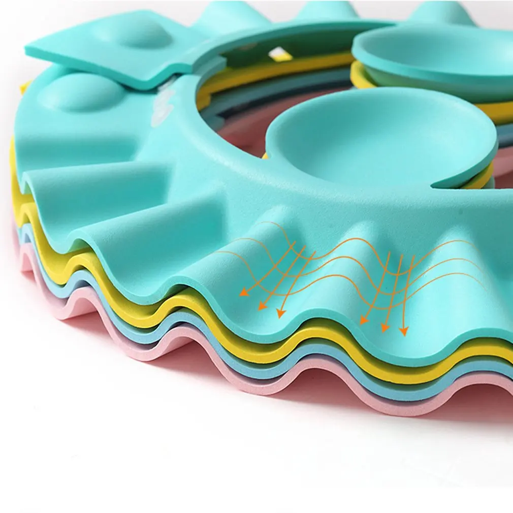 Характеристики:Материал: супермягкий пенопласт EVAДизайн: изменяемый РазмерТип узора: мультяшныйПол: Новорожденные, младенцы, детиПодходящий тип: шапочка для шампуня, шапочка для стрижки, шапочка для душа, шапочка от солнца, нагрудники для едыВозрастная группа: около 0-3 лет