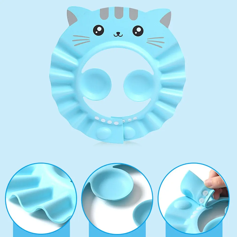 Шапочка для душа для новорожденных, Регулируемая Шапочка с мультяшным рисунком для защиты ушей, защита от шампуня для детей
