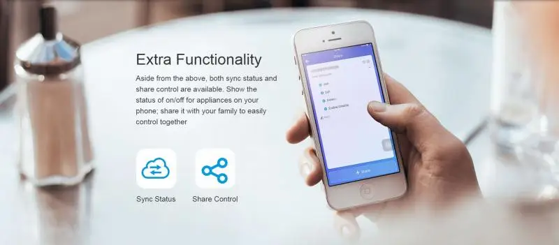 Совместим с функцией IFTTT, переключатели могут взаимодействовать с множеством устройств и услуг, чтобы включить или выключить их. Есть несколько сложных шагов, когда мы начинаем получать доступ к умному дому, для сопряжения, введите учетную запись и пароль, имя и так далее. Управление share обеспечивает быстрый способ, позволяющий вам и вашей семье управлять устройствами вместе. Вы не уверены, выключаете ли нагреватель, когда выходите из дома, Просто вытащите свой телефон и откройте приложение eWeLink, чтобы проверить состояние устройства в режиме реального времени.