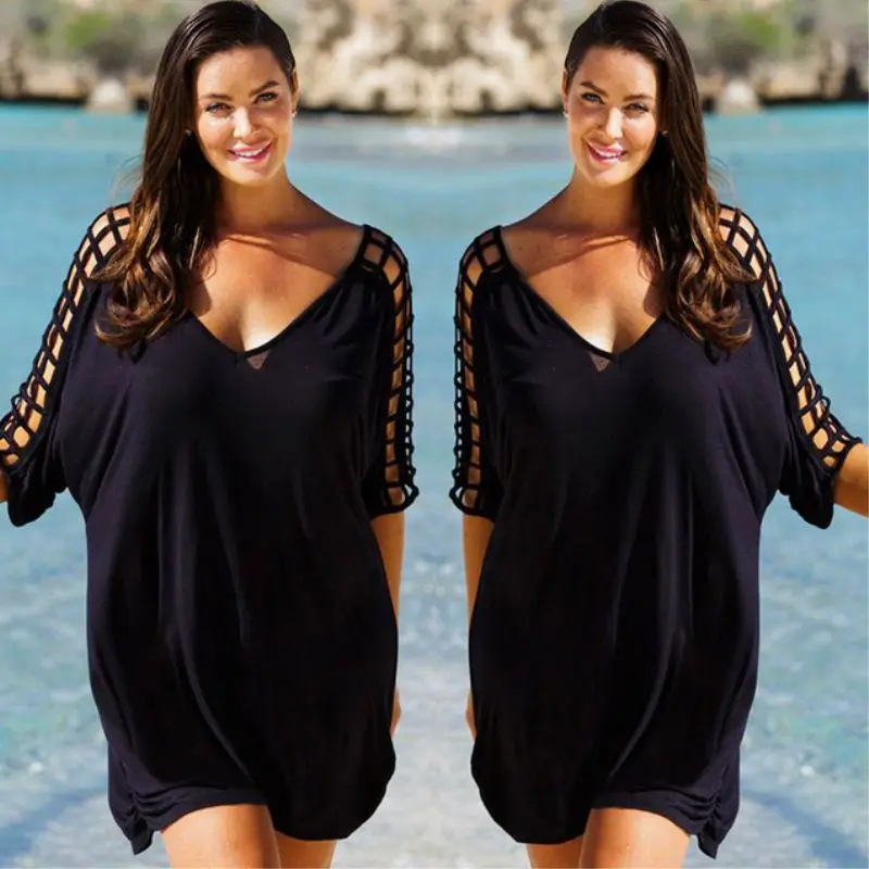 Женская летняя накидка M-3XL, женский купальник, Пляжное платье, женское бикини, Пляжная накидка, черное платье