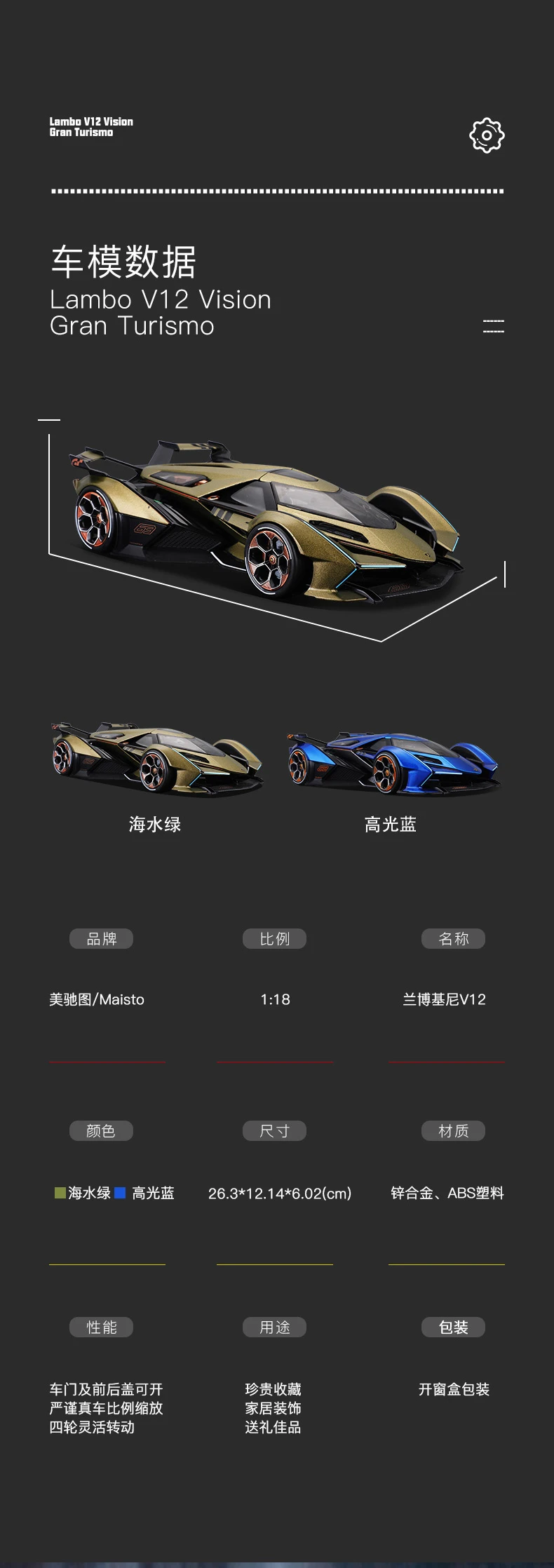 Maisto 1:18 Новинка Горячая Распродажа Lamborghini V12 VISION GRAN ...