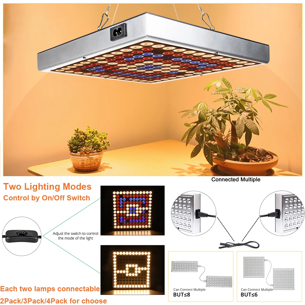 Светодиодный светильник для растений с полным спектром, соединительный переключатель, два режима управления, светильник для растений, палатка для выращивания растений, теплица, рассады