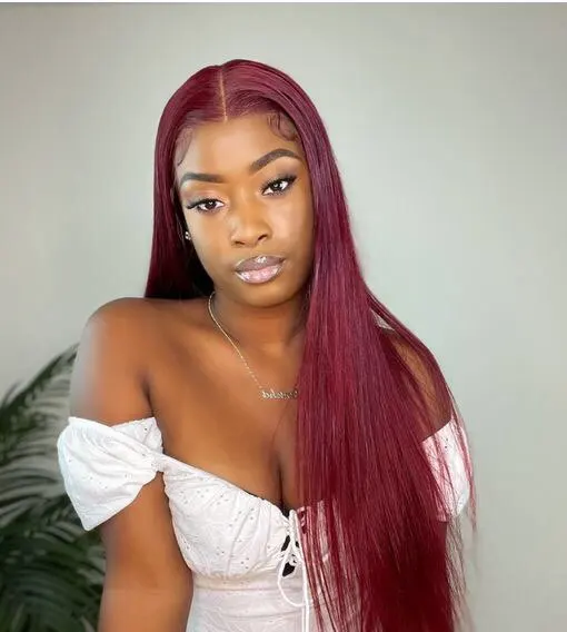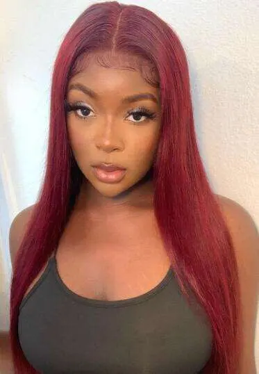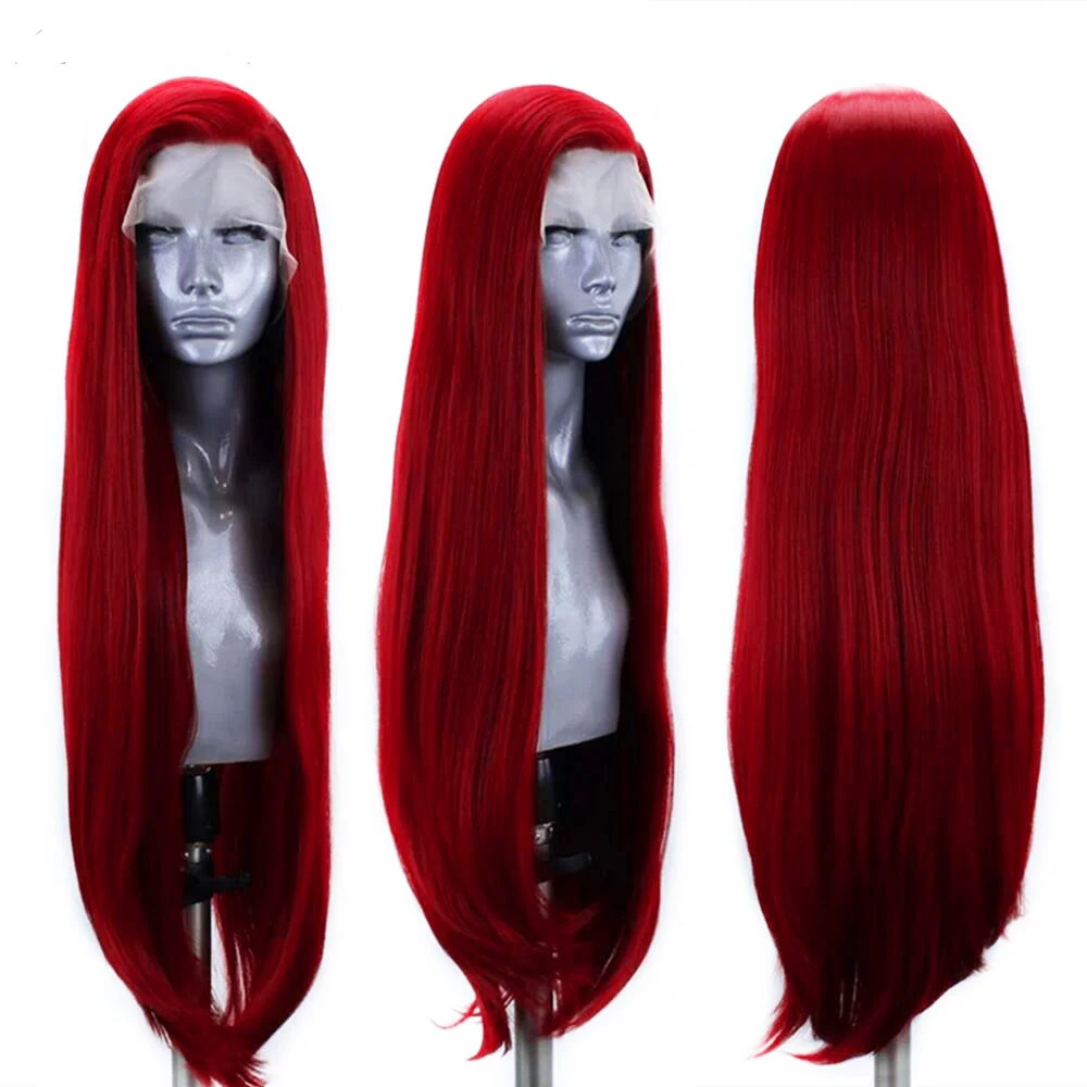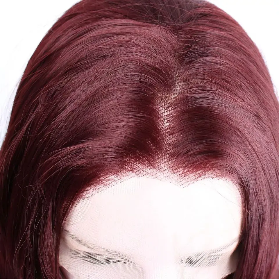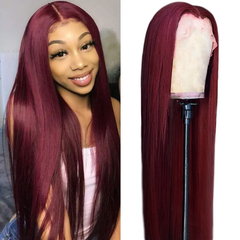 Длинные прямые бордовые синтетические волосы, парики на шнурке спереди, безклеевые T-образные парики, натуральные волосы для женщин