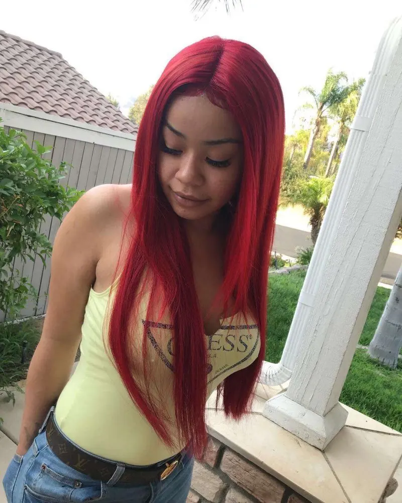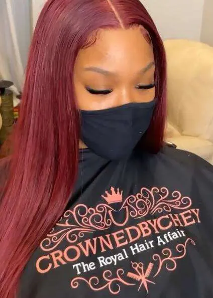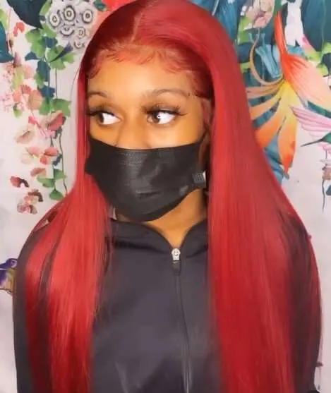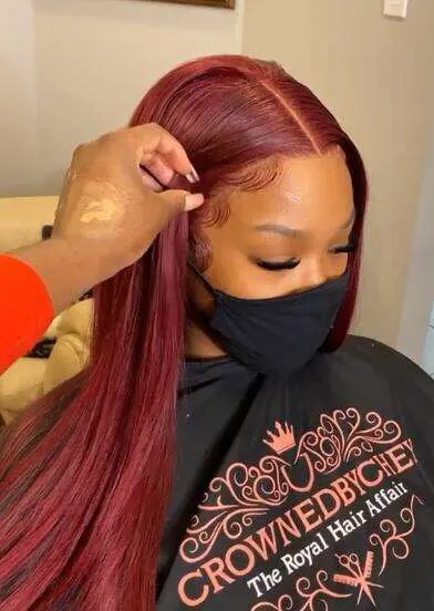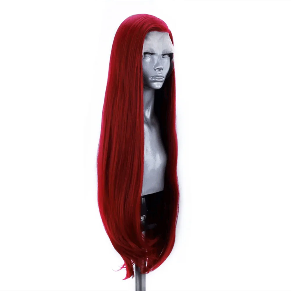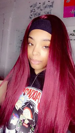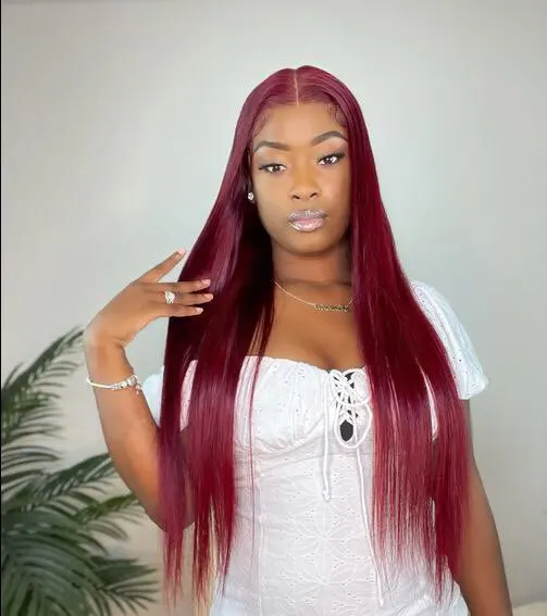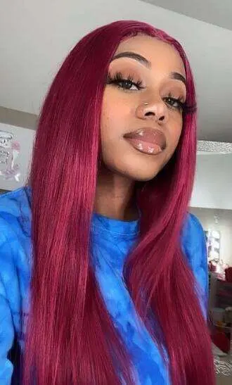 Длинные прямые бордовые синтетические волосы, парики на шнурке спереди, безклеевые T-образные парики, натуральные волосы для женщин