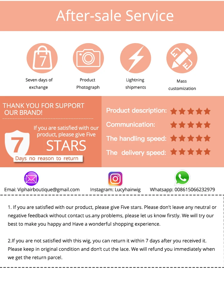 I'm super happy with my new wig, it was sent to me within one day after purchase and I got it within two weeks. The seller was super polite and put some nice gifts as well. The quality of the wig is very nice, looks exactly like on pictures