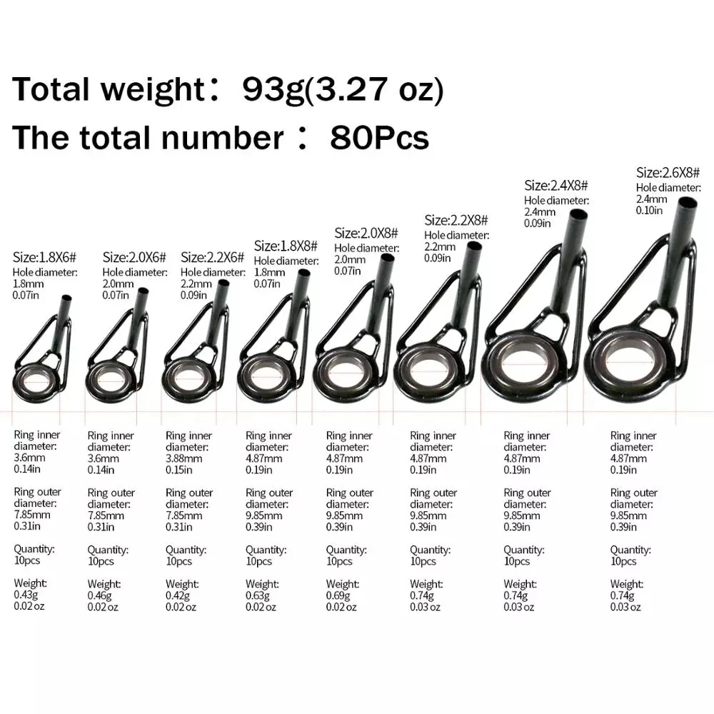 Набор рыболовных удочек 90 шт., 1,6 #-3,2 #, направляющие наконечни...