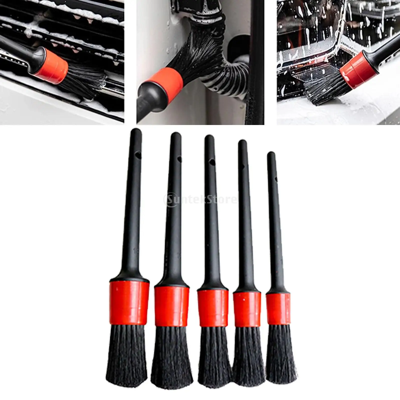 Набор кистей для детейлинга, 5 разных размеров, полотенце из микрофибры, пластиковая ручка, натуральные волосы кабана премиум-класса, щетина без накидки
