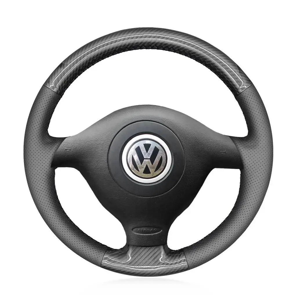 Чехол 5D из углеродного волокна и кожи с черными отверстиями для руля, чехол с черным стежком для VolksWagen VW Golf 4 Passat B5 1996-2003