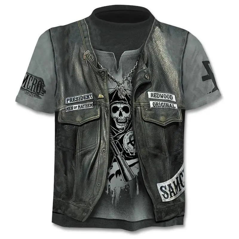 Новинка лета 2021, мотоциклетная футболка с черепом 3, мужская и же...