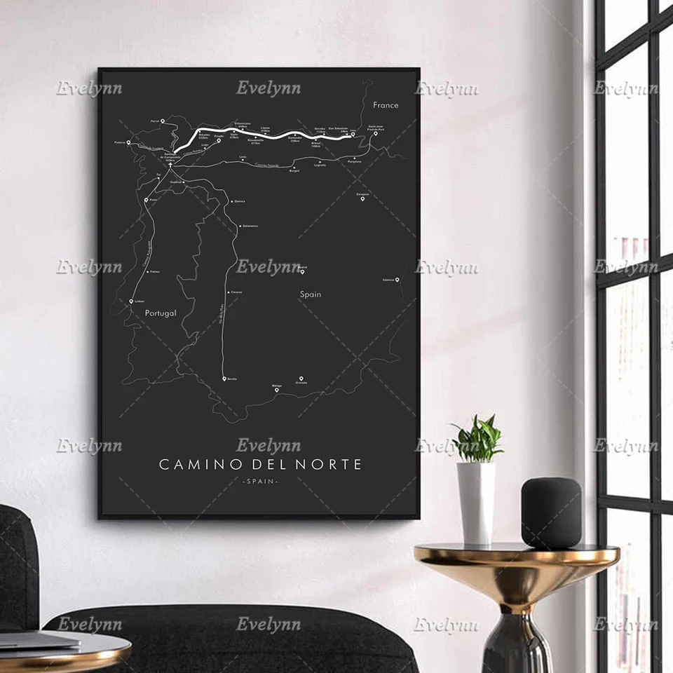 Camino г-н Trail карта Camino Пеший Туризм Trail карта Плакат Иакова Современные принты для домашнего декора на холсте уникальный подарок
