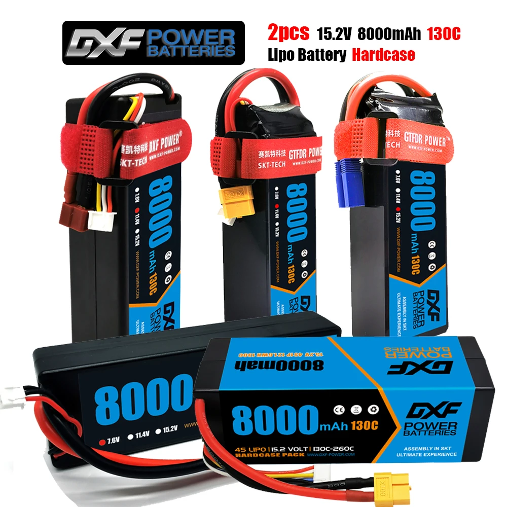 Аккумуляторы DXF 2 шт., 2S, 3S, 4S Lipo 7,6 В, 11,4 в, 15,2 в, 8000 мА ч, 130C-HV для RC18 110, автомобиля, XxMax, Arrma, багги, дрона, лодки