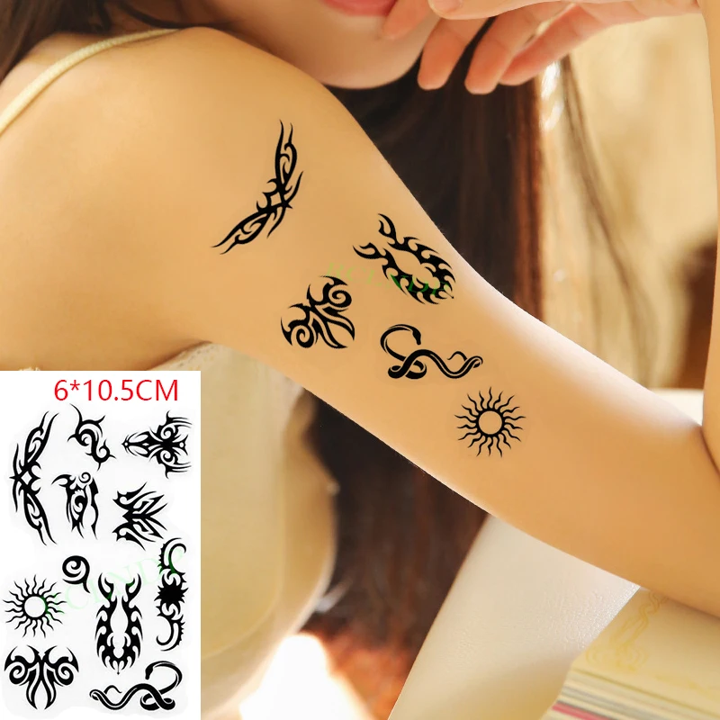 Водостойкая Временная тату-наклейка, тотем, солнце, паук, змея, Баб...