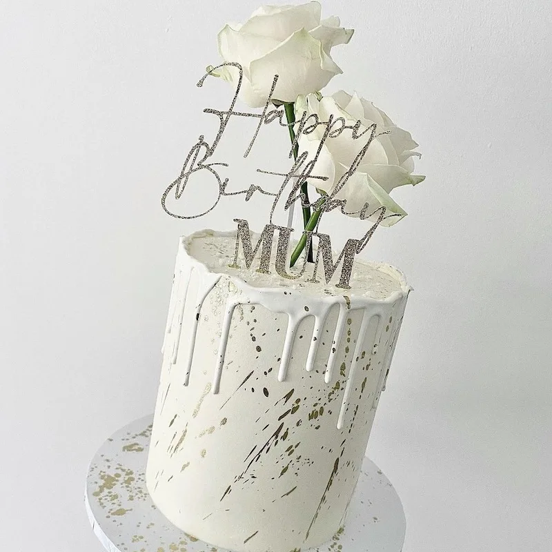 Новинка, акриловые Серебристые белые топперы для торта на день рождения матери, украшения для торта на день рождения матери