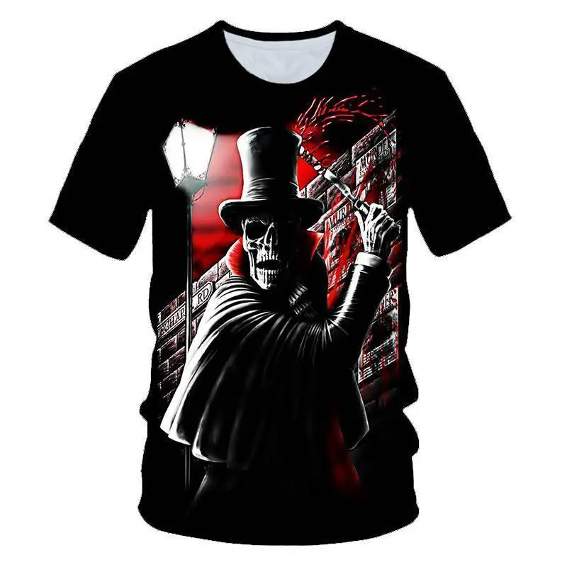 Футболка мужская с 3D-принтом скелета, крутая тенниска в стиле рок,...