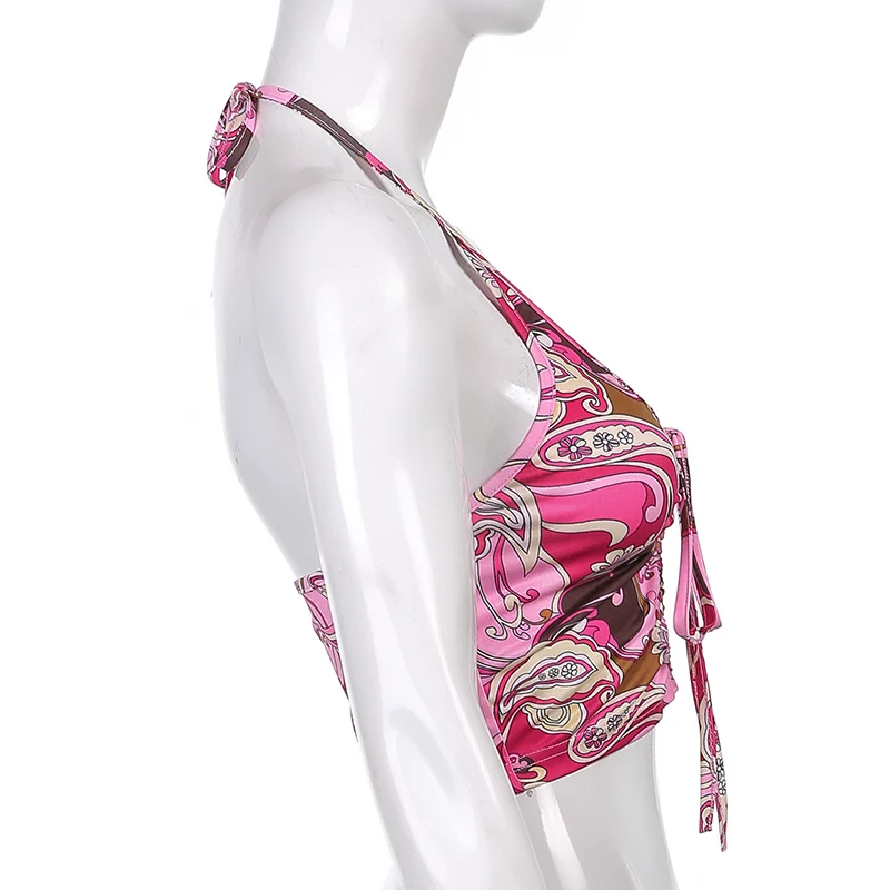 Майка женская с цветочным принтом, пикантный топ с открытой спиной,...