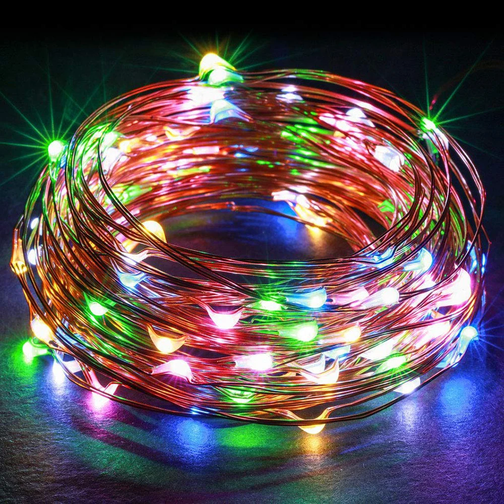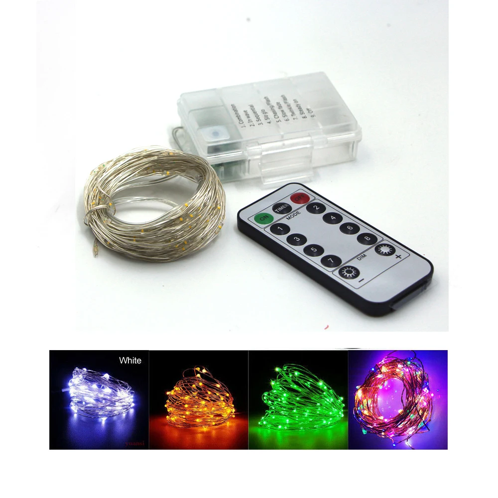 Светодиодная гирлянда с пультом дистанционного управления, на батарейках AAA, 5 М50 светодиодный одов10 М100 светодиодов, Сказочная гирлянда Серебристая проволока для свадьбы, Рождества, праздника, декоративная лампа