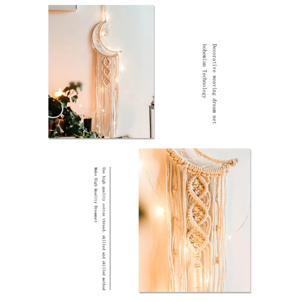 Макраме Ловец снов в стиле бохо, украшение для стен дома, для детской комнаты, сада, уличные подарки светильник кой, звезда, луна