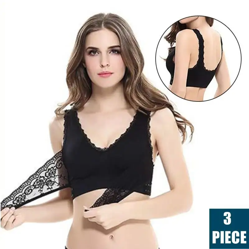 Бюстгальтер с эффектом пуш-ап, кружевное нижнее белье с боковой пряжкой, 3 шт.лот