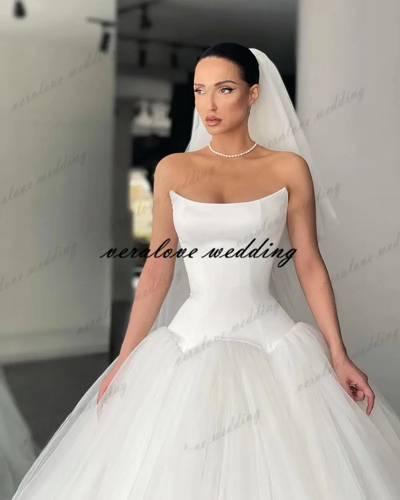Женское свадебное платье без бретелек, белое Тюлевое свадебное платье Дубая, 2021