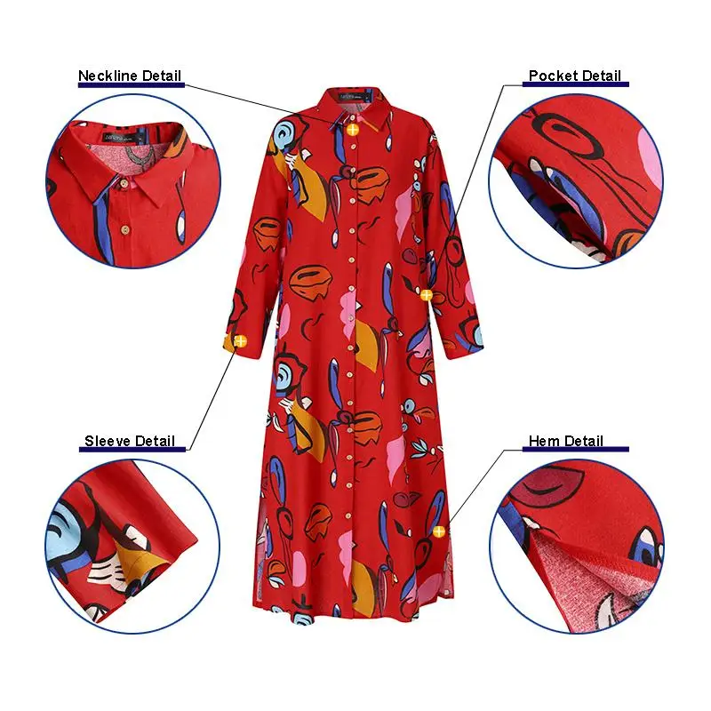 Осенний сарафан ZANZEA, элегантное женское длинное платье-рубашка с...