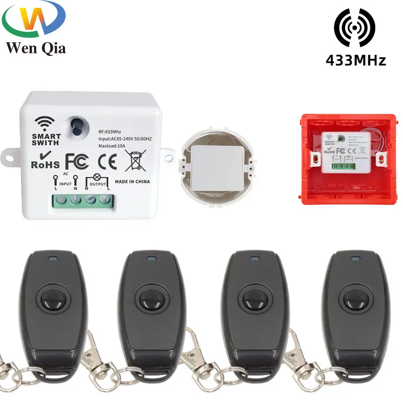 433 МГц Смарт Беспроводной дистанционного Управление переключатель релейный модуль переменного тока 220V 10A светильник Управление; ВКЛВЫКЛ брелок для обустройства дома LEDLamp