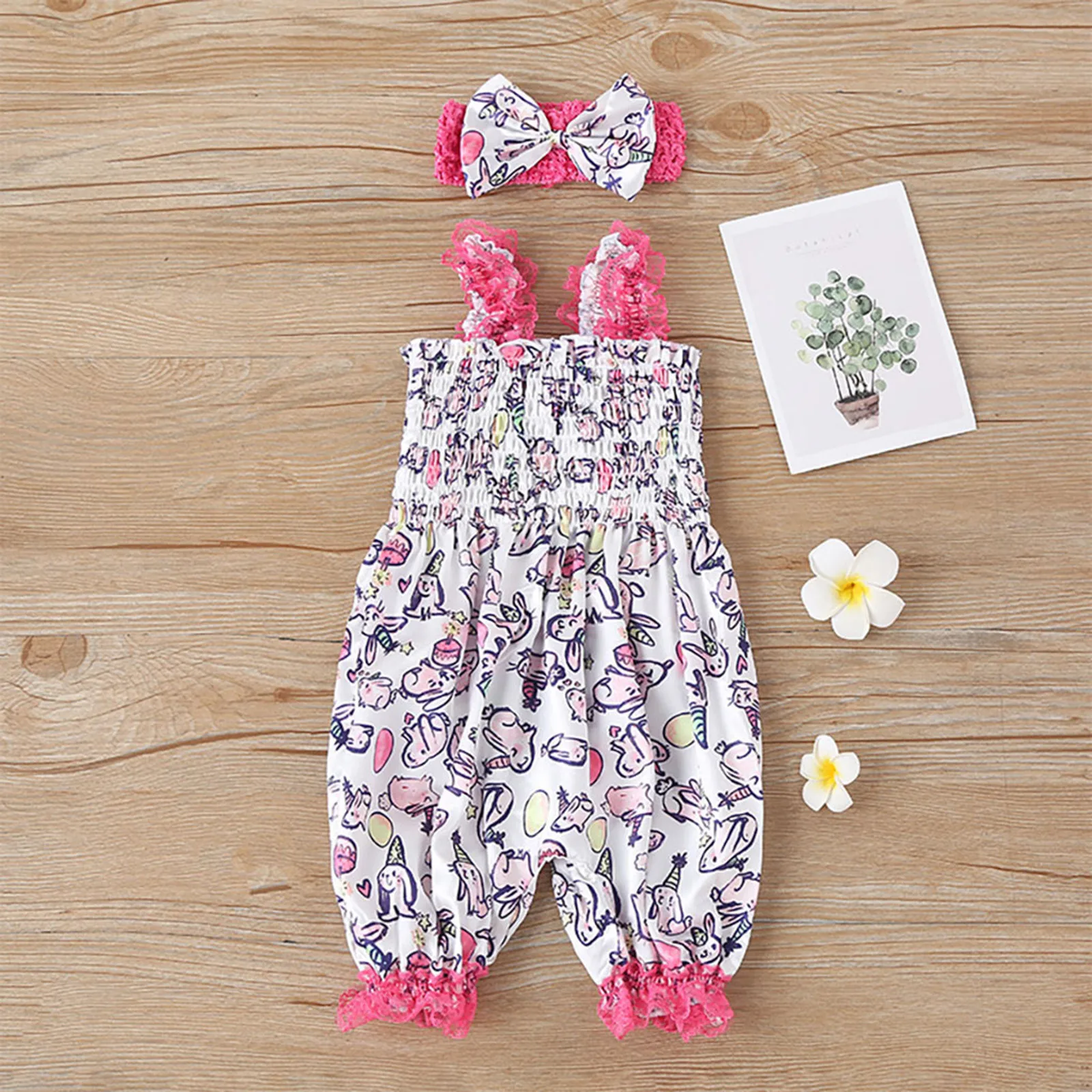 Комбинезон для новорожденных девочек; Цельный кружевной комбинезон с пасхальным кроликом на лямках