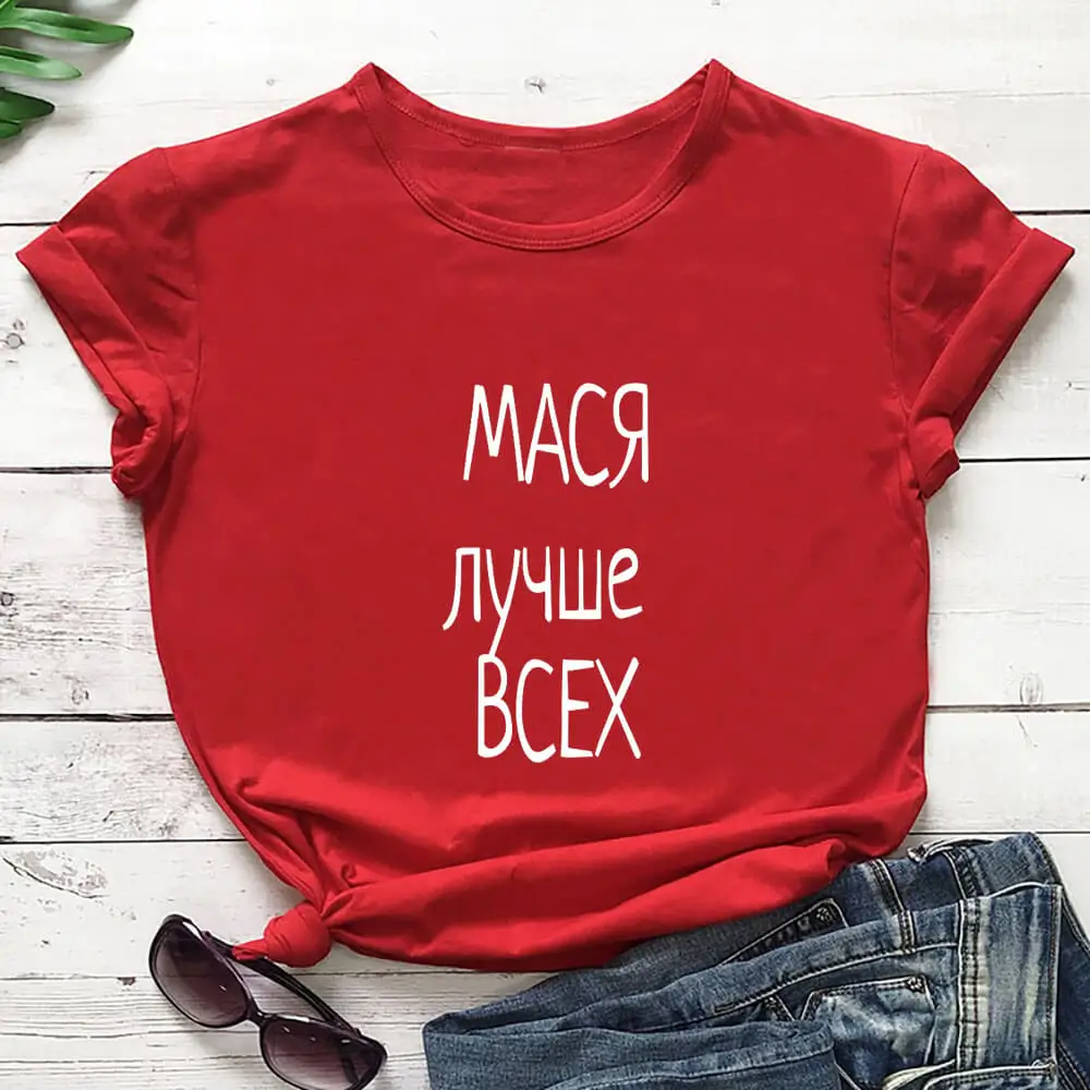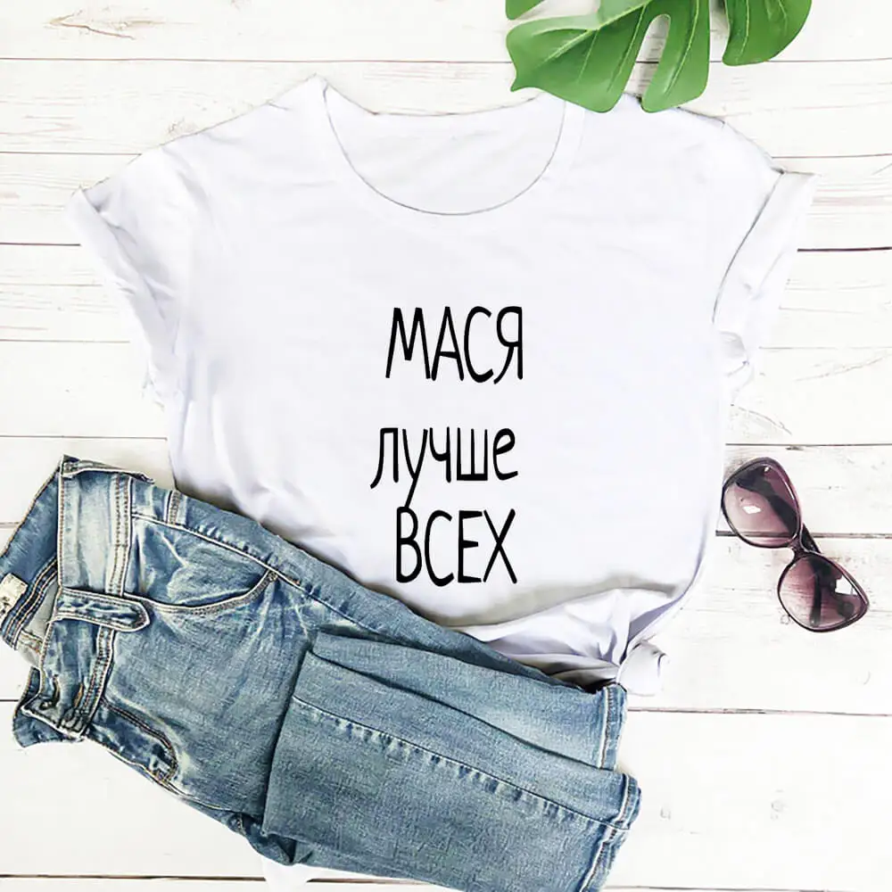 Современная молодежь Женская футболка из 100% хлопка с русской кири...