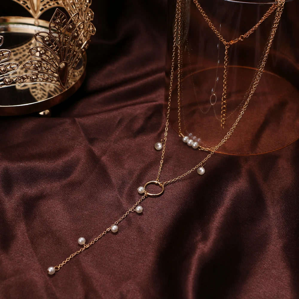 Длинное жемчужное ожерелье FNIO в стиле бохо женское, многослойная цепочка-чокер с подвеской из жемчуга, модное Ювелирное Украшение для свитера, 2021