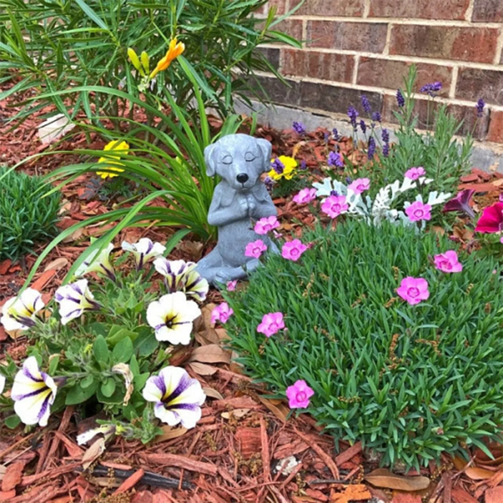 Поместите эту статуэтку дзен-собакиВаша клумба, в пространстве для йоги или рядом светильник ким ручьем.