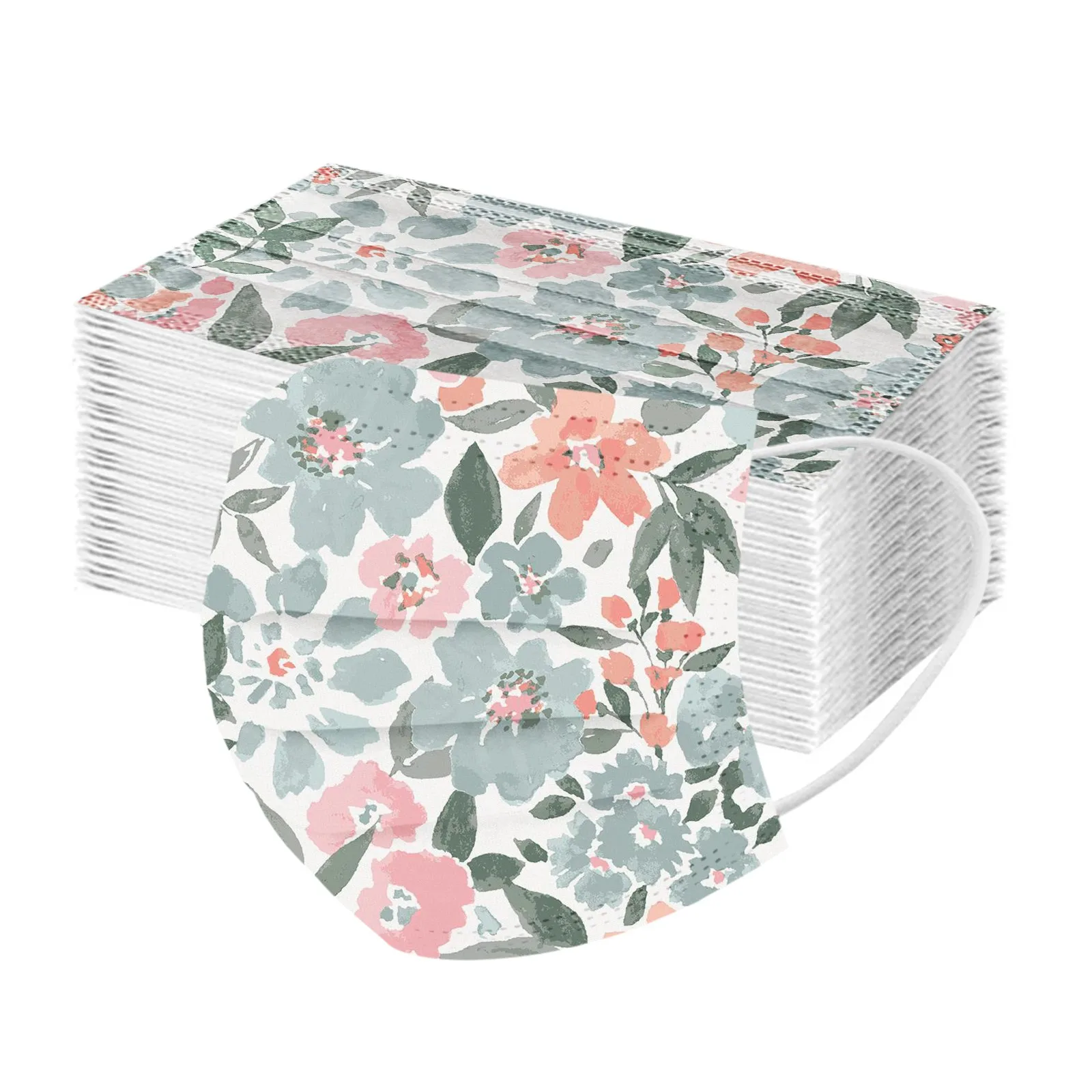 Маски для лица одноразовые с цветочным принтом для взрослых, 1050 шт.