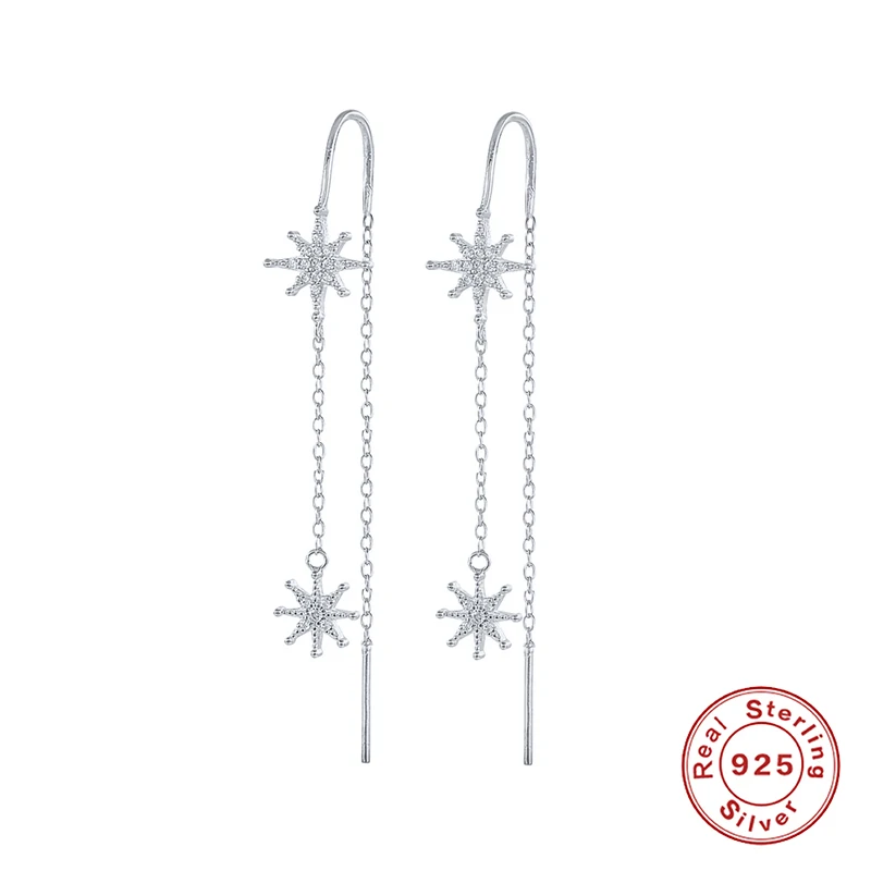 BOAKO 925 стерлингового серебра Starburst нити серьги CZ звезда длинная цепь кисточкой Висячие серьги в виде капель с кристаллами в форме для женщин подарок вечерние ювелирные изделия Brincos