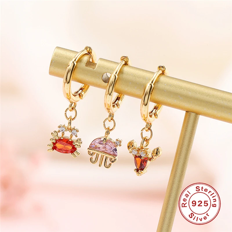Женские Разноцветные серьги-гвоздики с фианитами Aide S925, летние серьги с морской звездой и кристаллом осьминога, подарок для девушки, серьги для пирсинга завитка ушной раковины