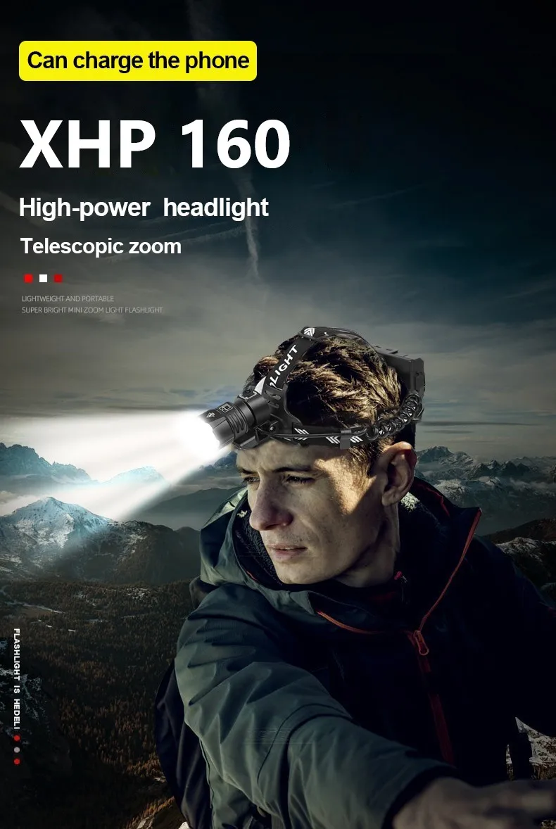 2021 Новинка XHP160 Мощный светодиодный налобный фонарь перезаряжаемый светодиодный налобный фонарь 18650 Usb Головной фонарь Рабочая лампа