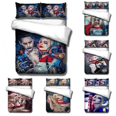 Комплект постельного белья harlin Quinzel, отряд клоуна, самоубийство, с 3D-принтом, пододеяльник, королева, полный размер, двойной, для Хэллоуина, спальни, Декор