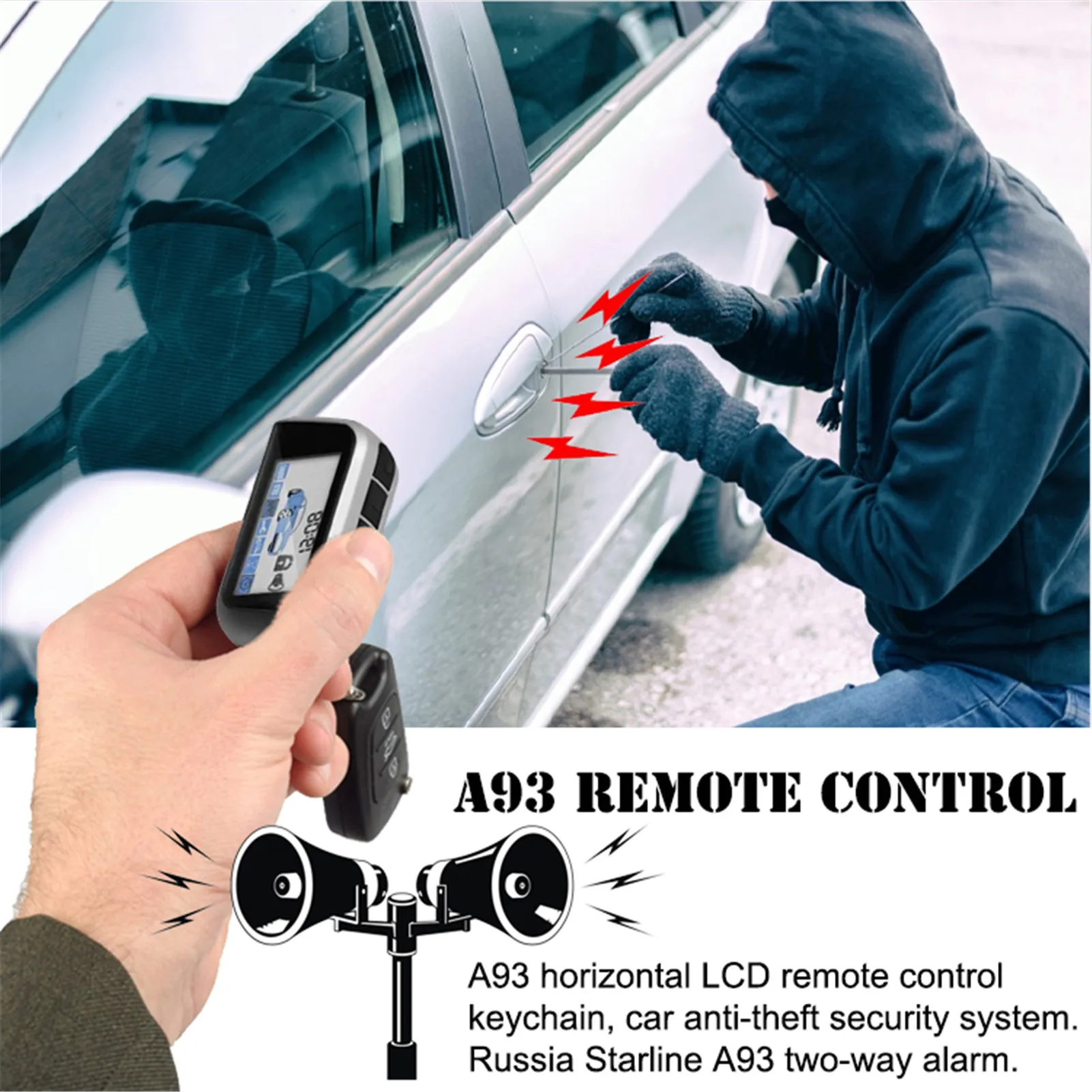 Автомобильная противоугонная система A93, поперечное ЖК-управление,...