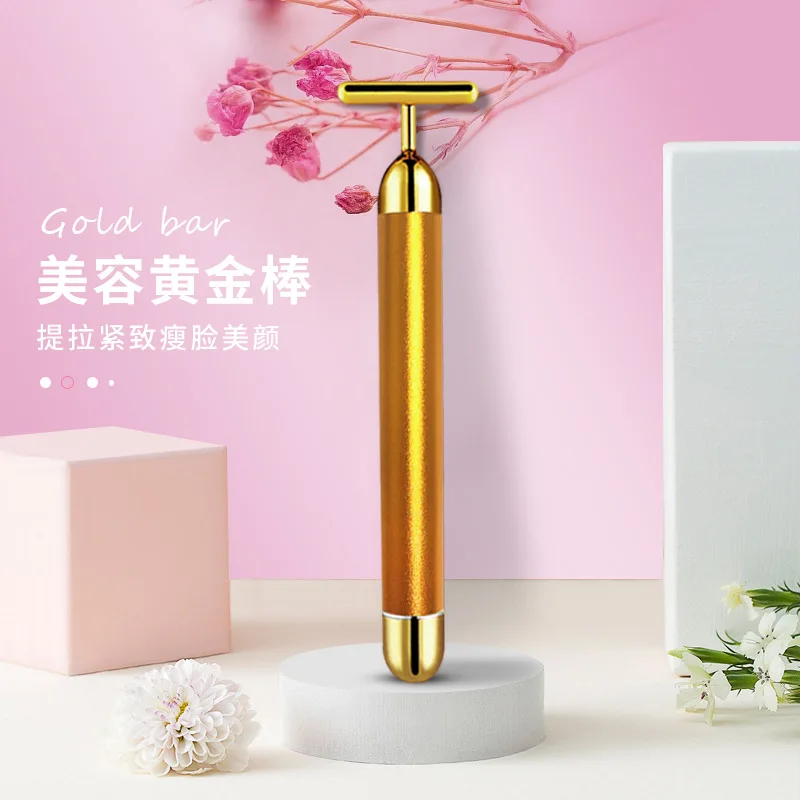 24k Gold уход за кожей лица Лифт бар ролик вибрации всего тела Массажер средство для ухода за кожей лица палку лица Красота по уходу за кожей, Т-образные, вибрирующий инструмент