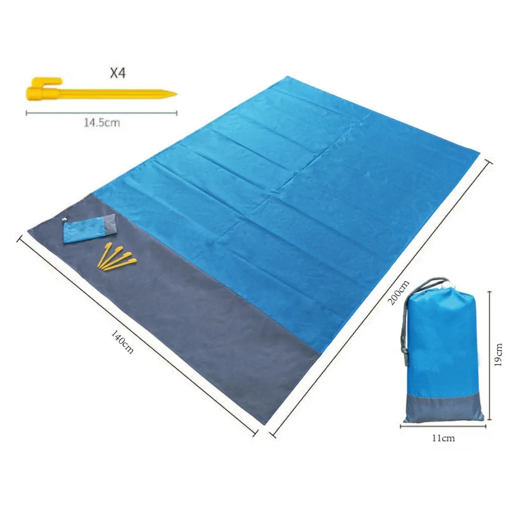 【Быстрое сухое и водонепроницаемое пляжное одеяло изготовлено из прочного, легкого и дышащего 100% нейлона с парашютом, это пляжное одеяло быстро сохнет и водоустойчив. Уличный пляжный коврик водостойкий верх (полиэстер) и водонепроницаемое дно (ПВХ).