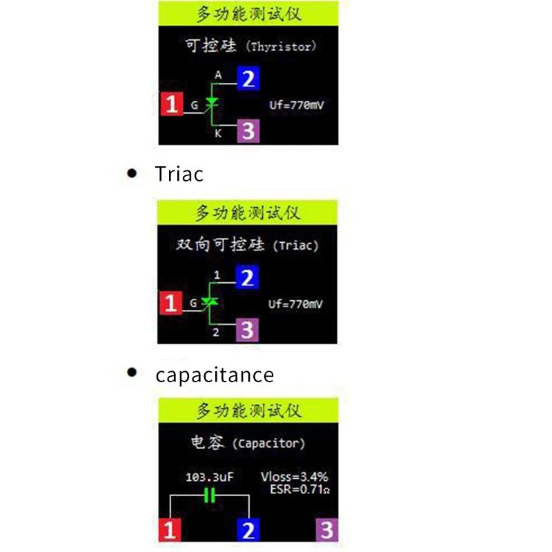 Его можно широко использовать для обнаружения транзисторов NPN и PNP, конденсаторов, резисторов, диодов, триодов, N-канальных и P-канальных полевых транзисторов, IGBT, JFET, triac, аккумуляторов и т. д.Его также можно использовать для обнаружения инфракрасных волн. Он также может обнаруживать стабилитрон и имеет функцию самокалибровкиПосле обнаружения совместите инфракрасный пульт дистанционного управления с «ИК» светом, затем нажмите кнопку на пульте дистанционного управления. Если детектор успешно расшифрует его, он отобразит код данных и форму инфракрасной волны.Управление одной кнопкой, автоматическое обнаружение и выключение, также вы можете нажать многофункциональную кнопку, чтобы закрыть детекторПоместите контакты компонента в соответствующую область, затем наберите маленькую ручку, и детектор проверит ее автоматически, наконец, результаты будут четко отображаться на задсветильник ВОМ TFT-экранеНе похож на обычный черно-белый дисплей, этот детектор покажет результаты в цветеПримечание посылка электронных компонентов случайна и не может быть выбранаМатериал: АБСЦвет: белыйПосылка1 х Многофункциональный тестер транзисторов1 x Электронный набор компонентов1 х кабельВ комплект входит только указанное выше содержимое, другие продукты в комплект не входят.Примечание: светильник вая съемка и различные дисплеи могут привести к тому, что цвет товара на изображении будет немного отличаться от реального. Допустимая погрешность измерения +/- 1-3 см.