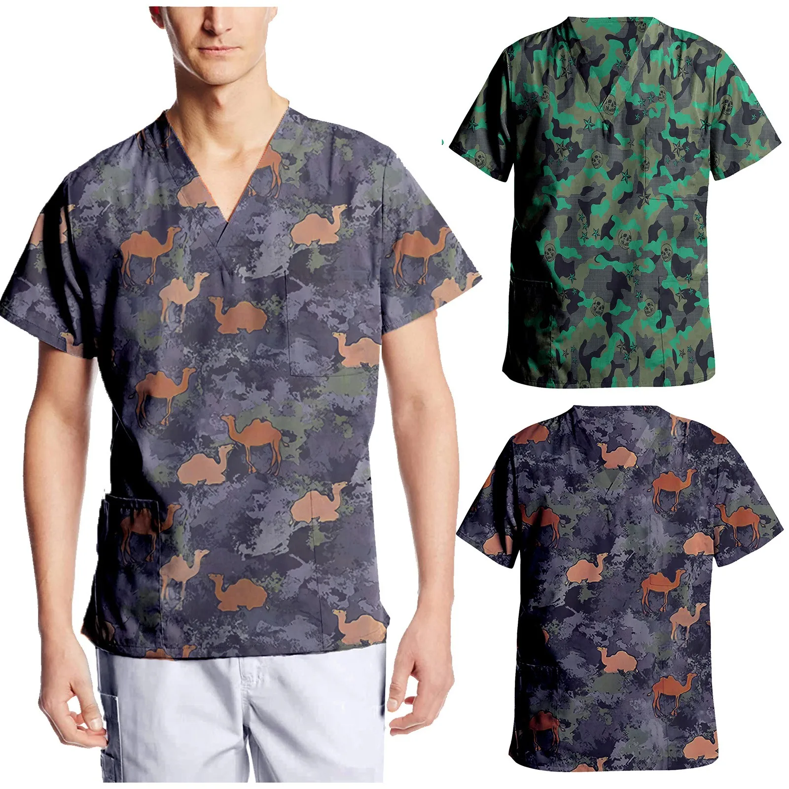 Футболка мужская с коротким рукавом, V-образным вырезом и карманами