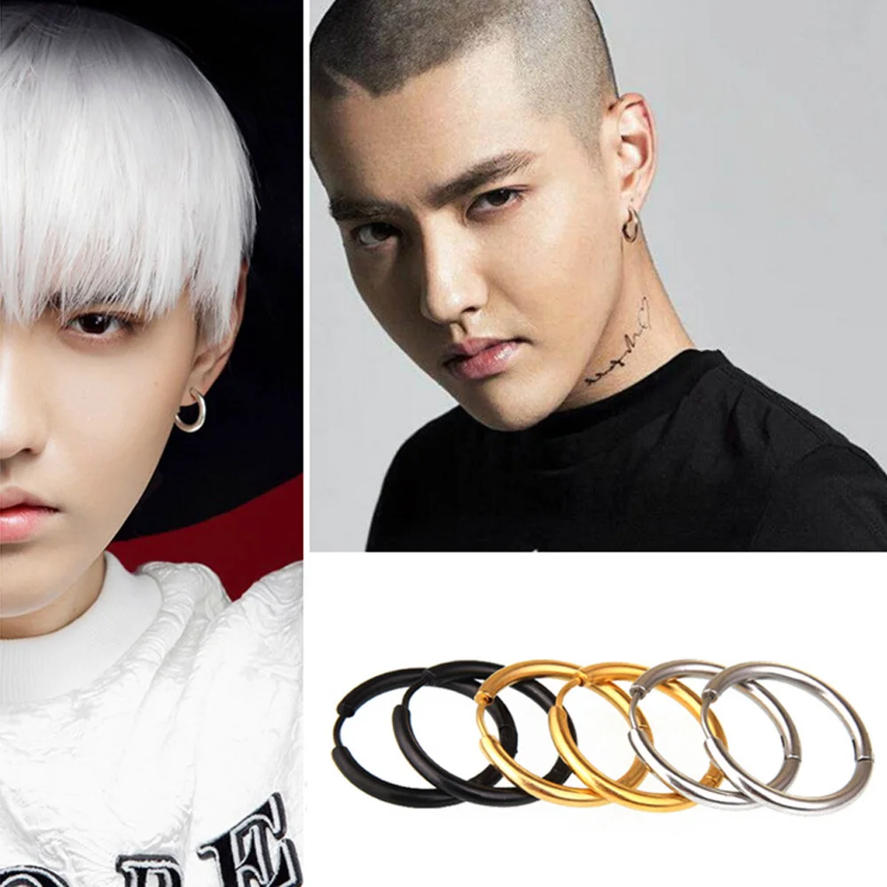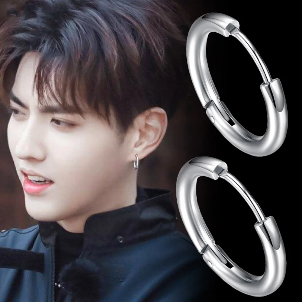 Мужские гладкие серьги-кольца, ювелирные изделия из титановой стали...