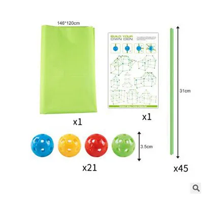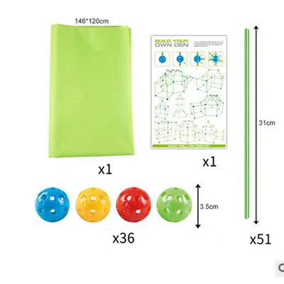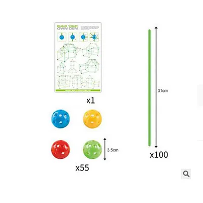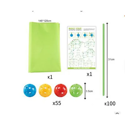 Гибкий реквизит для мальчиков и девочек: наш детский комплект ultimate fort builder предназначен для детей старше 5 лет, они могут построить пещеру, играть с палатками, ракетами, Дома, igloos, замки принцессы, туннели, прорезыватель, игрушечная палатка, пиратский корабль, просто добавьте листы, чтобы создать скрытое место. Простой в изготовлении и долговечный: Изготовлен из прочного и высококачественного пластика, просто вставьте и поверните стержень в шар, и строитель может подключаться и легко Разобрать за несколько секунд без структурного коллапса. С сумкой для хранения, она используется для использования в помещении и на открытом воздухе. Искра творчества и воображения: идеальная креативная игрушка для детей 2-3 и более. Дети планируют и решают проблемы вместе, строят разные творческие Структуры, идеальная игрушка для обучения подарки на дни рождения, праздники, Рождество, Хэллоуин и новый год! Цвет ручки: зеленый Цвет шара: желтый/зеленый/красный/синий Диаметр шара: 3,5 см Длина палочек: 31 см Размер палатки: 146 см * 120 см Посылка включает в себя: SetA: 1 палатка + 1 Спецификация + 45 палочек + 21 шар SetB: 1 Спецификация + 45 палочек + 21 шар SetC: 1 палатка + 1 Спецификация + 51 палочка + 36 шаров SetD: 1 Спецификация + 51 палочка + 36 шариков SetE: 1 палатка + 1 Спецификация + 100 палочек + 51 шар SetF: 1 Спецификация + 100 палочек + 51 шарики Примечание: палочка зеленого цвета и шар может быть случайного цвета Спасибо за покупку! Совет: ткань для палатки не такая большая, как на видео Примечание: * Товар будет отклонен на 1-2 см, это нормально, надеюсь, вы это понимаете, дорогой. * Так как на различных мониторах компьютеров цвет слегка компьютеров цвет передается по-разному, вы можете не волноваться о том, дорогой.(1 inch≈ 2,54 см)
