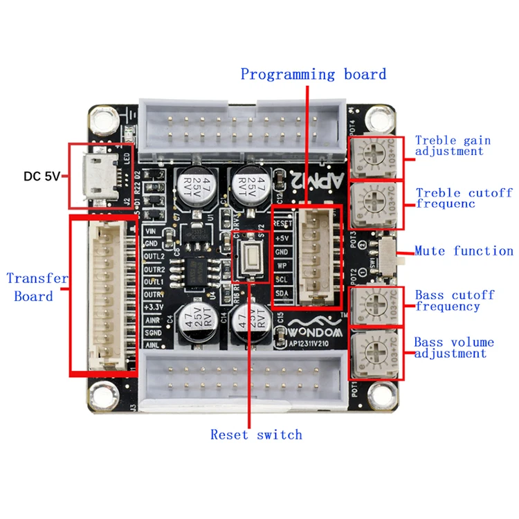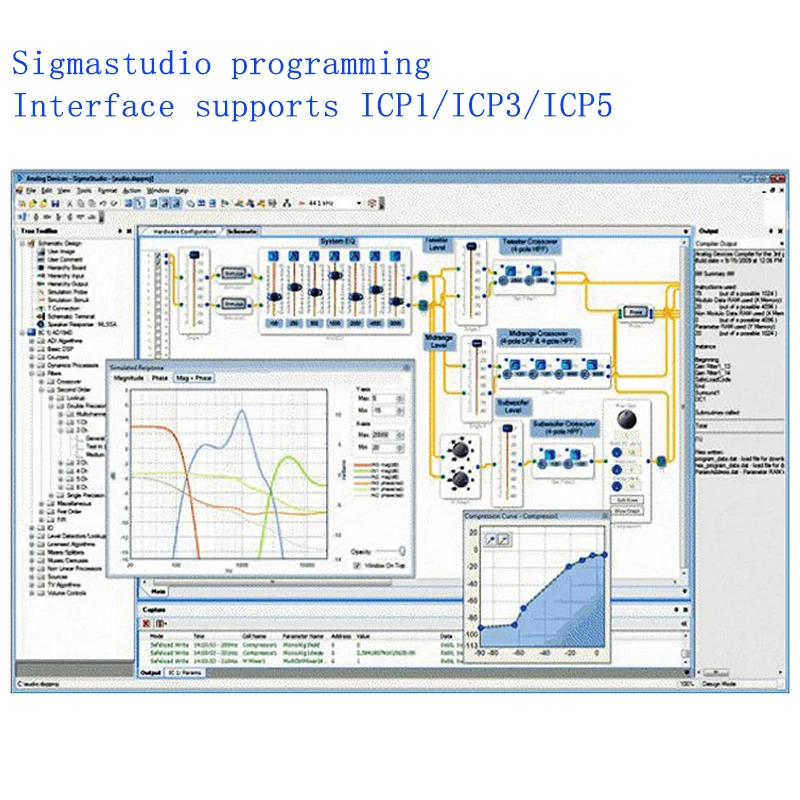 Предустановленный потенциометр, регулировка частоты отключения, программирование Sigmastudio/APP/PC UI