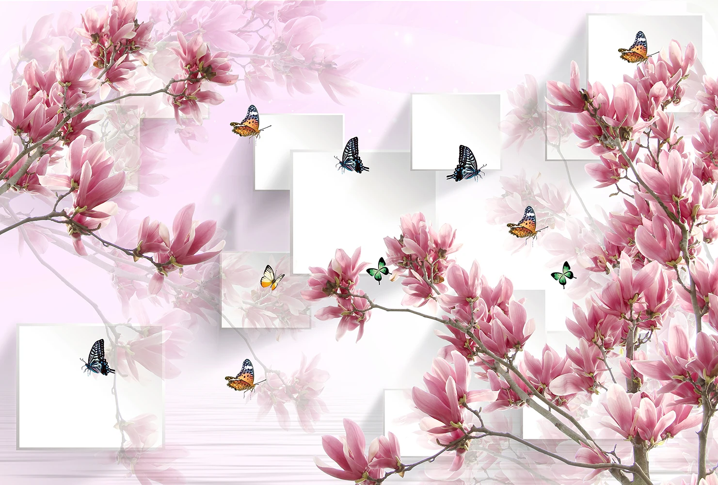 Фотообои категория Объемные арт. Т-150 Магнолия с бабочками