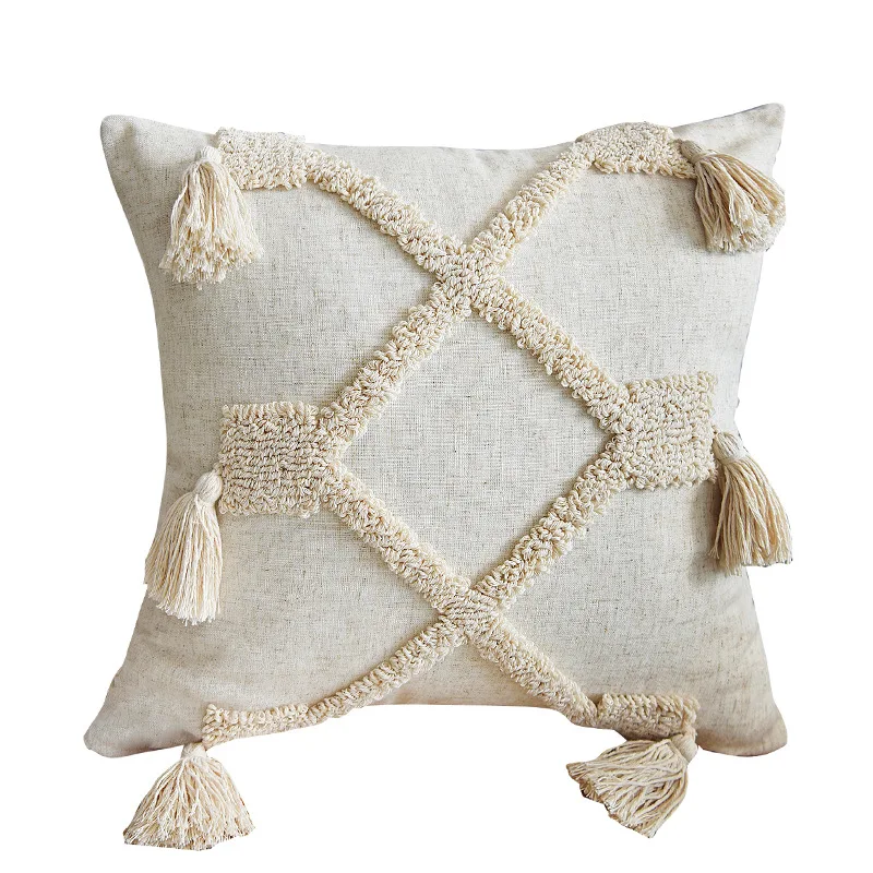 Бежевая наволочка в скандинавском стиле с кисточкой, 45x4 530x0 см