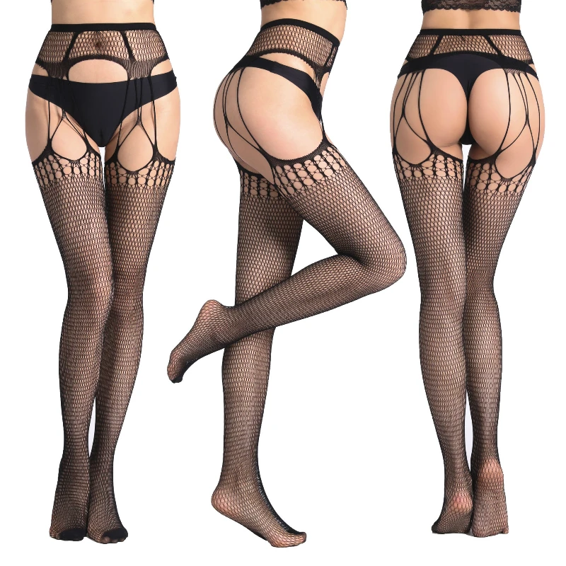 Сексуальные колготки, Ажурные кружевные открытые C чулки до бедра + женское нижнее белье, женские черные цветочные колготки
