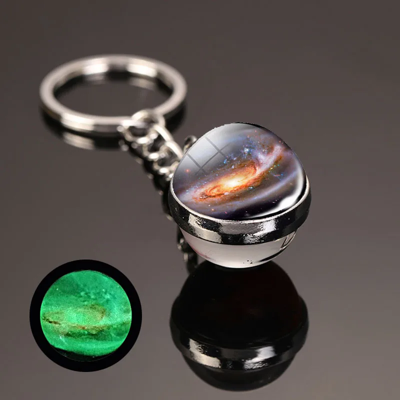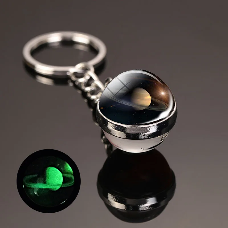 Светящийся в темноте брелок солнечной системы планеты Галактики туманности светящийся брелок Луны Земли Солнца двухсторонний стеклянный шар брелок