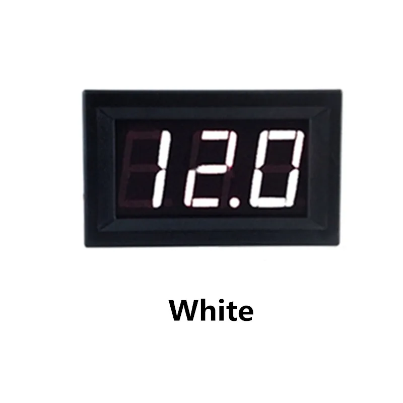 Защита обратного подключенияДиапазон: DC4.5-30V (не требуется Выходная мощность)Дисплей: Три 0,56 ''светодиодный цифровой трубкиЦвет дисплея: красный/синий/зеленыйЧастота обновления: около 500 мс/разВход: напряжение постоянного тока (<2 раза в диапазоне)Разрешение: 1% + 1 цифраИсточник питания: DC4.5-30V (с общим входом)Рабочая температура: -10 °C ~ 65 °C1. Проводка вольтметра проста, нужно только выбрать две линии, защита разворота стола, реверс не горит.2, вольтметр Начальное напряжение низкое, красный, просто 3,2 V, просто 2,7 V зеленый, голубой просто 3,0 V сможет правильно измерять, начните с цены на двухвиревольтметровое напряжение-самая низкая в любой точке мира. Это значительно облегчит использование литиевой батареи, аккумулятора 18650. В том случае, если напряжение ниже 3,5 V яркость дисплея уменьшается, но это не влияет на удобство правильный что измерения были сделаны вручную.3. Для достижения оптимальной точности измерения Вольтметр будет отличаться в зависимости от измеренного напряжения, автоматически перемещая положение десятичной точки. Измерьте напряжение ниже 10 В, отображается после запятой 2; 10 в измерения напряжения отображаются после запятой 1. Это может позаботиться о потребителях батареи, но также удовлетворить потребности более высокого измерения напряжения на точности измерения.4, вольтметр используется для мотоциклов, автомобилей и других мониторинга напряжения батареи, своевременное определение состояния батареи. Другие напряжения также могут быть использованы для измерения.