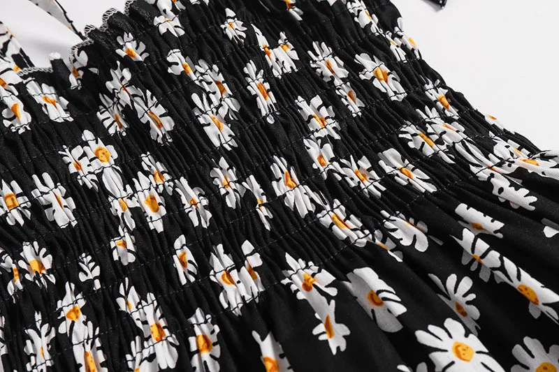 Детское летнее хлопковое платье принцессы на бретельках с оборками, женское платье с маленькими маргаритками и подсолнухами, платье с вишней