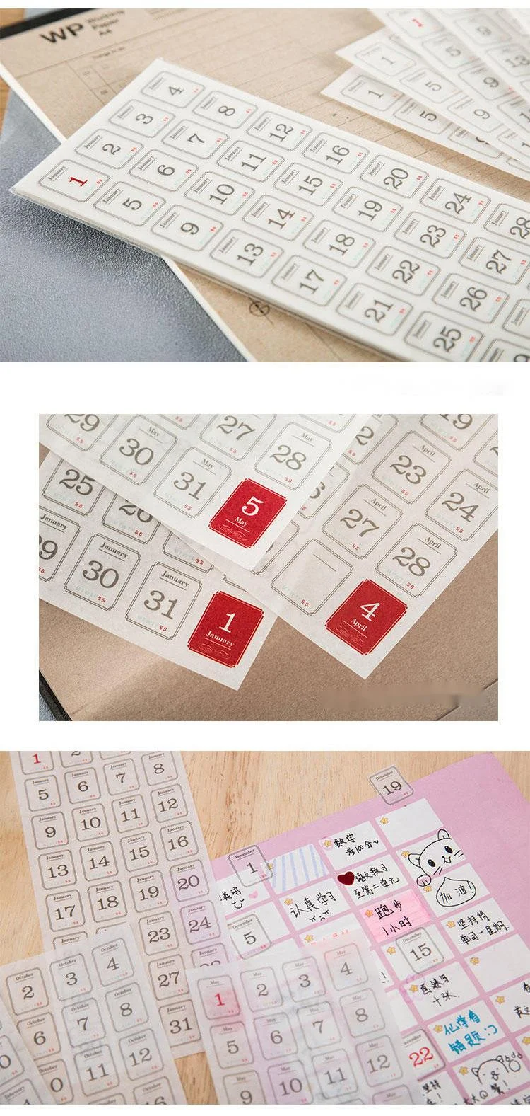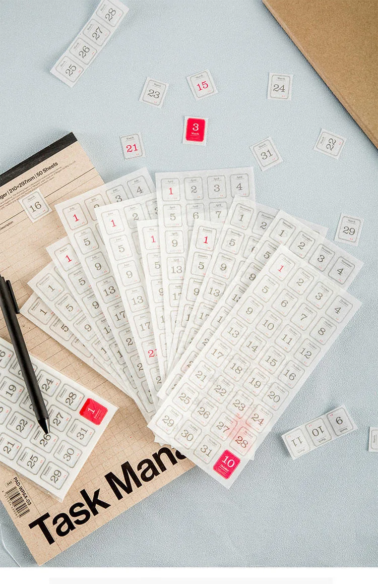 12 листов/набор, 365 дней, ежедневный блокнот, самоклеющиеся календарные наклейки, наклейки, s планировщик, месяц, Расписание, маленькая наклейка, наклейка для повестки дня