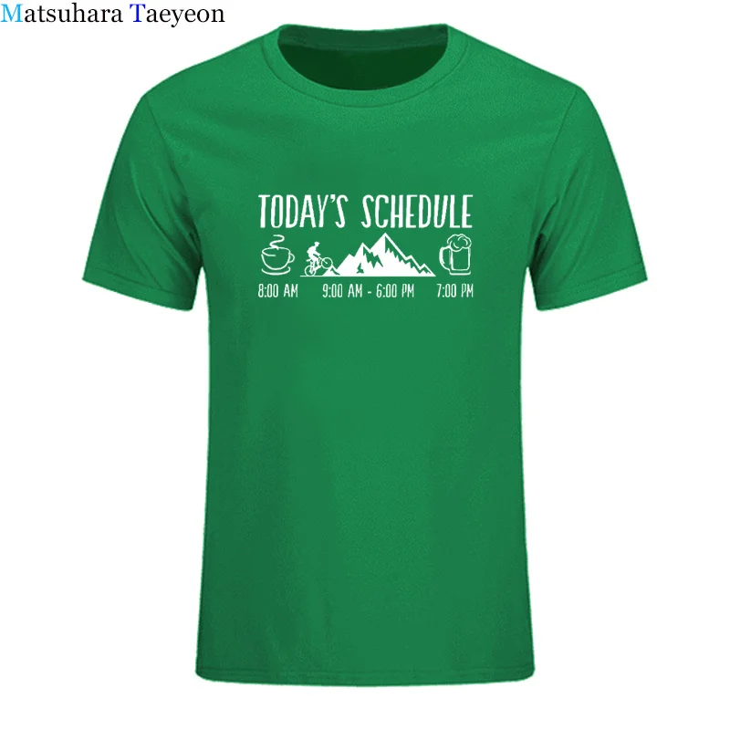 Мужская футболка с принтом, Забавный хлопковый топ с коротким рукавом, расписание сегодняшнего дня, циклы, горы, бикинги, кофе, пиво